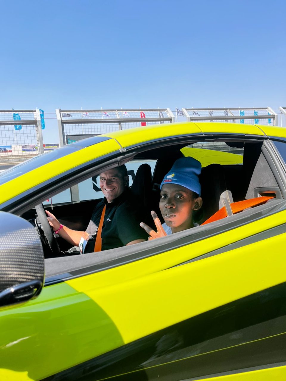 For 13-year-old Marthinus Fourie from Rooiwal, the day marked his very first time in a supercar. He admitted he was nervous at first but soon discovered the joy of the ride, saying, “This experience was fun, especially for my first in a fast car. I was very nervous at first but when I got in the car it was very nice. I would definitely do it again.” True to his word, Marthinus climbed back into the seat for multiple laps in different supercars, each one building his confidence and delight.