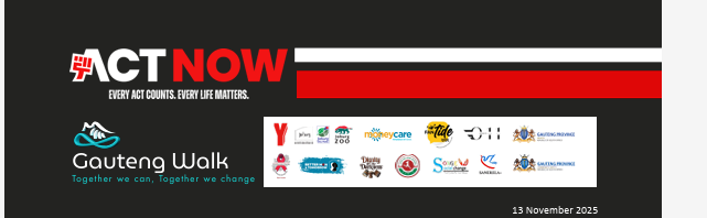Walk wish to inform al participants, partners, stakeholders, and members of the public of a change to the event date. Origina ly scheduled for 22 November 2025, the Gauteng Walk wil now take place on Sunday, 30 November 2025. This adjustment is necessary due to the extensive G-20 Summit road closures and restricted access routes expected in the Johannesburg, Rosebank, and Sandton corridors during the summit period. These closures would significantly limit access to and from Joburg Zoo and surrounding areas, creating logistical challenges and potential delays for participants, suppliers, and emergency services. To ensure a smooth, safe, and fuly accessible experience for al attendees, the Gauteng Walk wil proceed on the new date: NEW EVENT DATE: Date: Sunday, 30 November 2025 Venue: Joburg Zoo Distances: 5KM and 8KM Tickets: R120 for adults and R80 for children (R100 group discount for 20–50 tickets) Tickets Portal: www.ticketpro.co.za Registration: admin@actnow.africa Each participant wi l receive a race number, finisher medal, and access to the Welness Vilage. We remain committed to delivering an impactful, inclusive, and memorable walk that unites South Africans in promoting health awareness, positive gender norms, and safer communities. We thank al participants, partners, sponsors, and supporters for their understanding and continued commitment. Updated event information, registration details, and rollout timelines wi l be shared across a l official platforms. Issued by: Gauteng Walk Organising Committee “The Gauteng Walk is a reminder that transformation begins when we walk together — in health, in purpose, and in unity,” says Tebogo Edward Lerole, Chairman of Mzansi Act Now. “This is not just a walk — it’s a movement for hope, healing, and the restoration of dignity across communities.” Yours sincerely Karabo Loate MZANSI ACT NOW Media Liaison