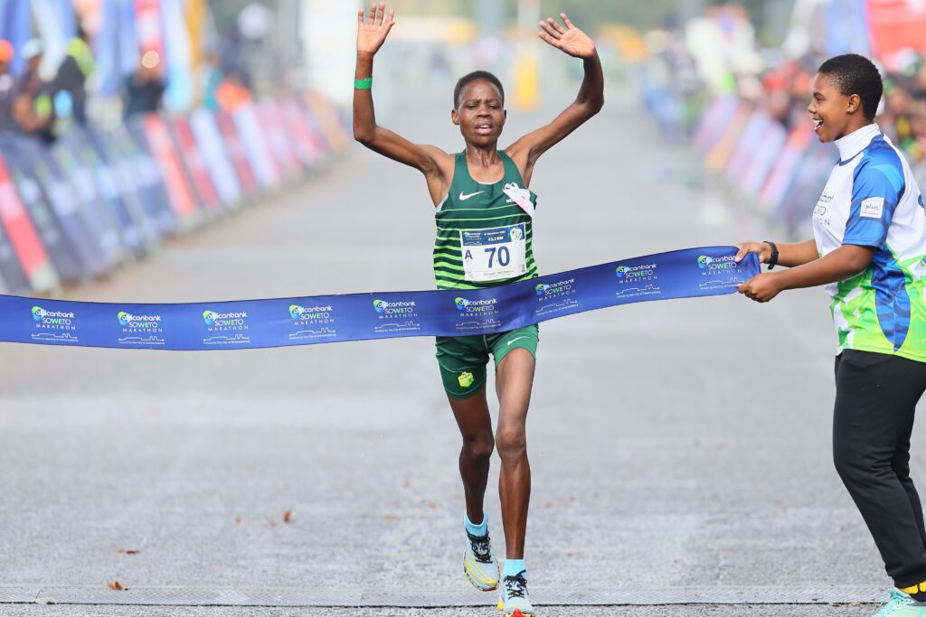 Winning the 2025 African Bank Soweto Marathon in the men’s race was Khoaranhlane Joseph Seutloali (Hollywood Athletics Club) in 2:20:09, followed by Entsika Runner Ntsindiso Mphakathi in second and rounding the podium Onalenna Khobkhobee from Nedbank Running Club in third.